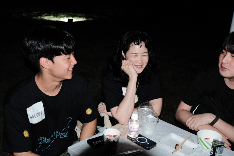 예배 후에는 준비된 야식을 나누며 소그룹으로 서로의 이야기를 나누고,