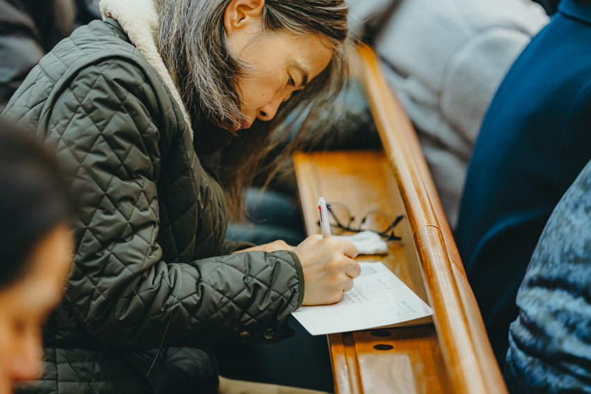 가족들을 위한 기도 제목을 카드에 작성하고, 기도를 드렸습니다.