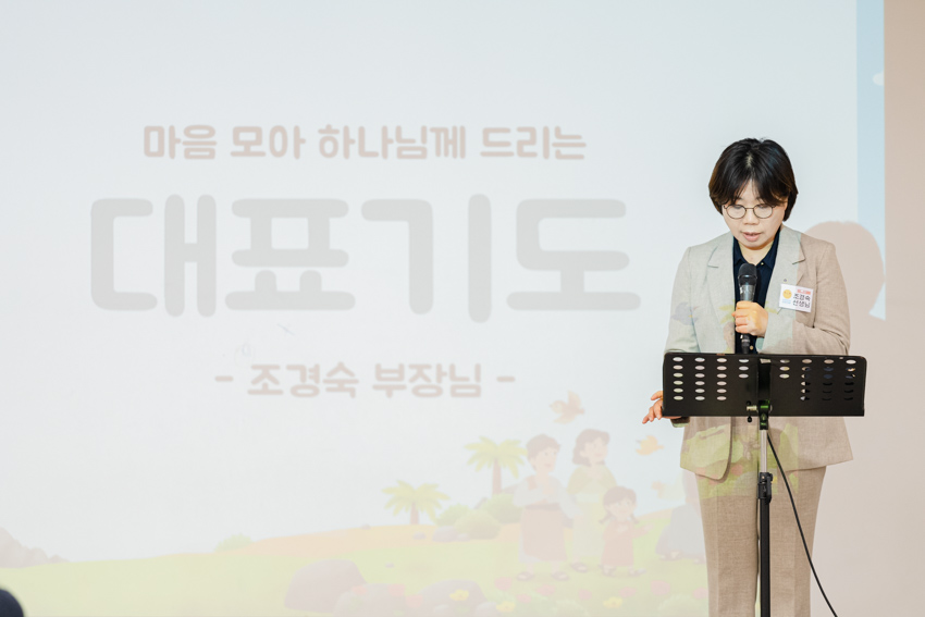 부장 조경숙 권사가 예배를 위해 기도했습니다.